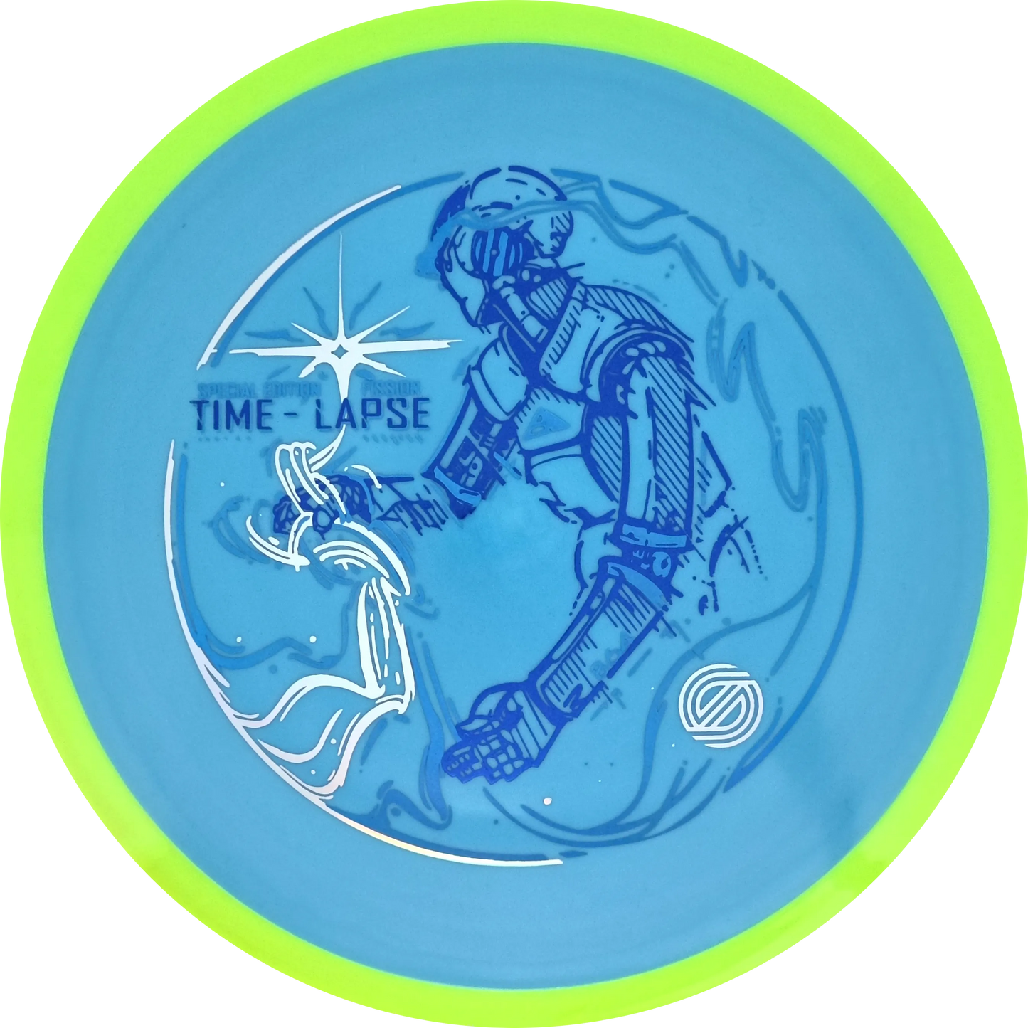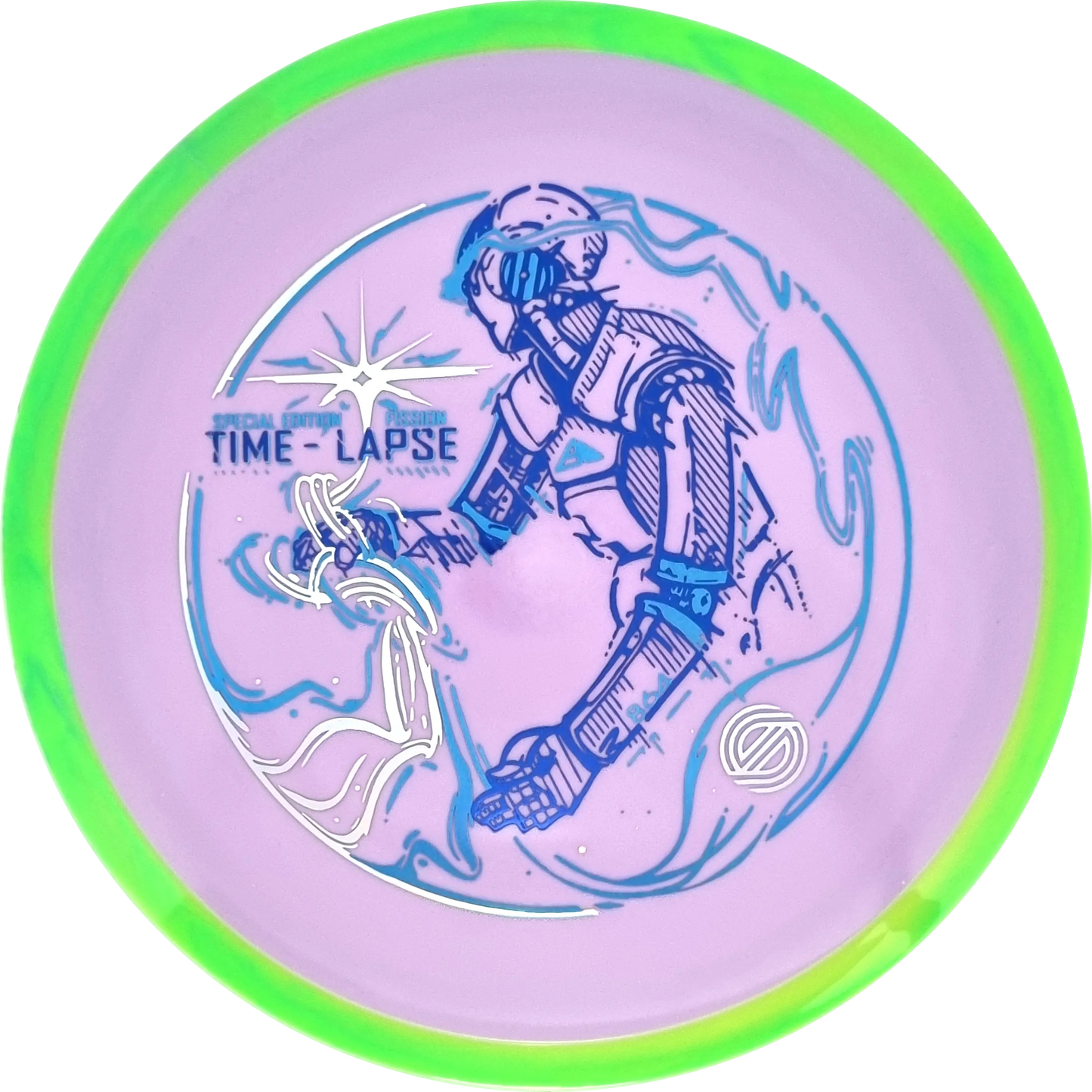 Axioms Time-Lapse is a distance driver from Simon Line which is a series of discs designed in collaboration with Simon Lizotte. The overstable driver can be used for the longest throws and if you have a fast arm, you will be very happy with your Time-Lapse.