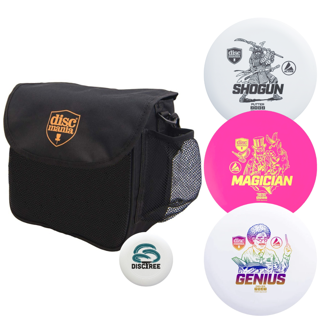 The small starter pack contains a should bag and three discs from Discmania. The set is perfect to get started and with the three discs you cover all aspects of the game from the teepad to the basket.
