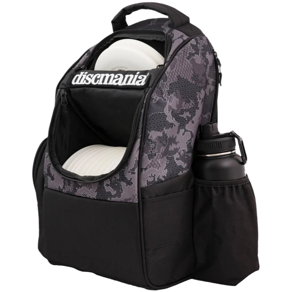 Discmania's Fanatic Fly backpack is designed for the disc golf player who wants to have enough room for all the necessities without being weighed down by all the extras. The main compartment in the bag holds 18+ discs and the top compartment has room for another 3 discs. On one side of the bag is an extra pocket where you can easily store 2 more discs or other accessories you bring to the course. On the other side of the bag is a holder for your water bottle.