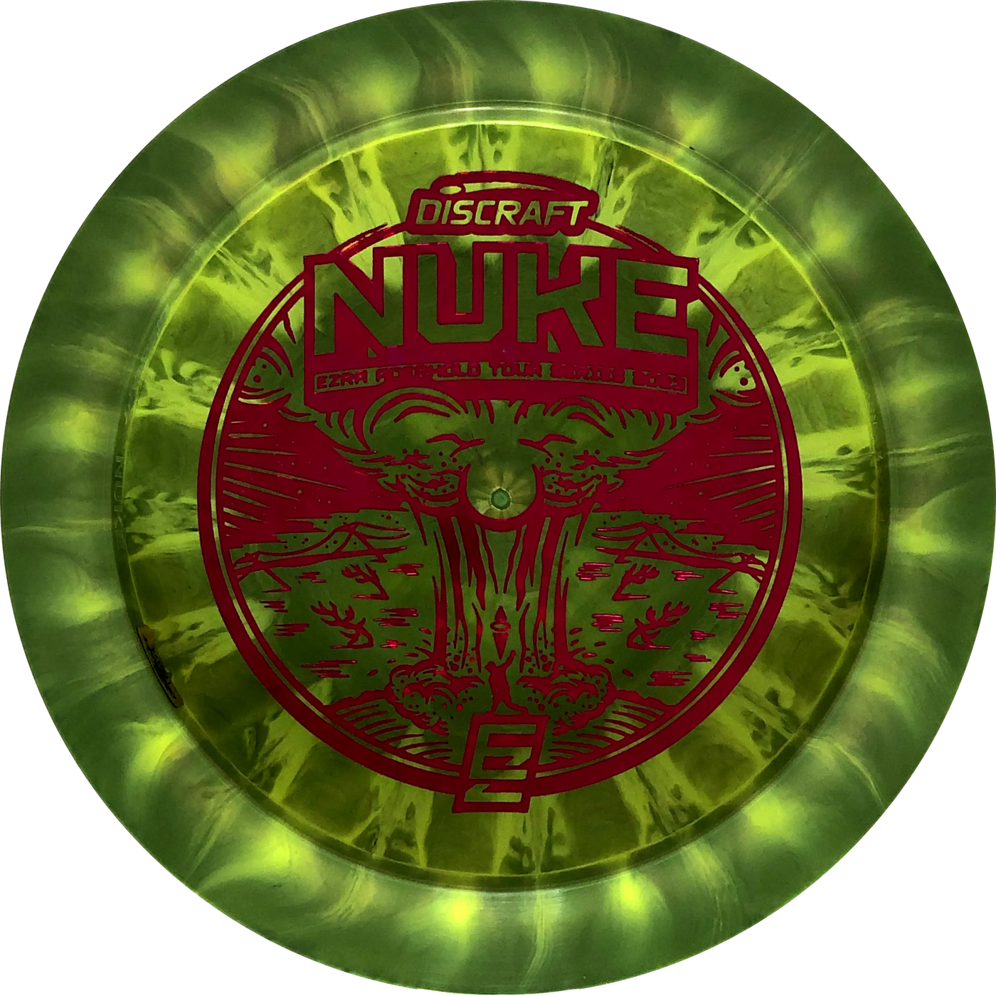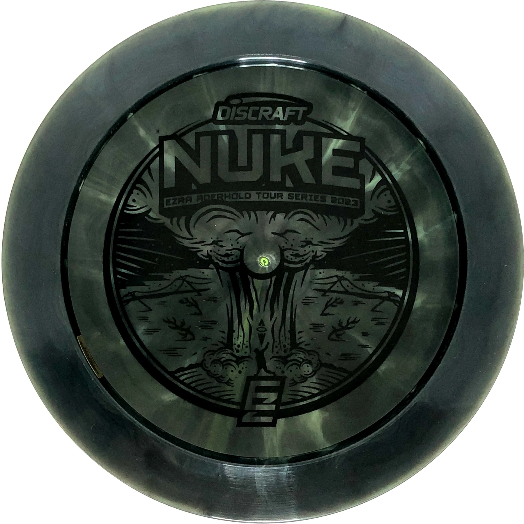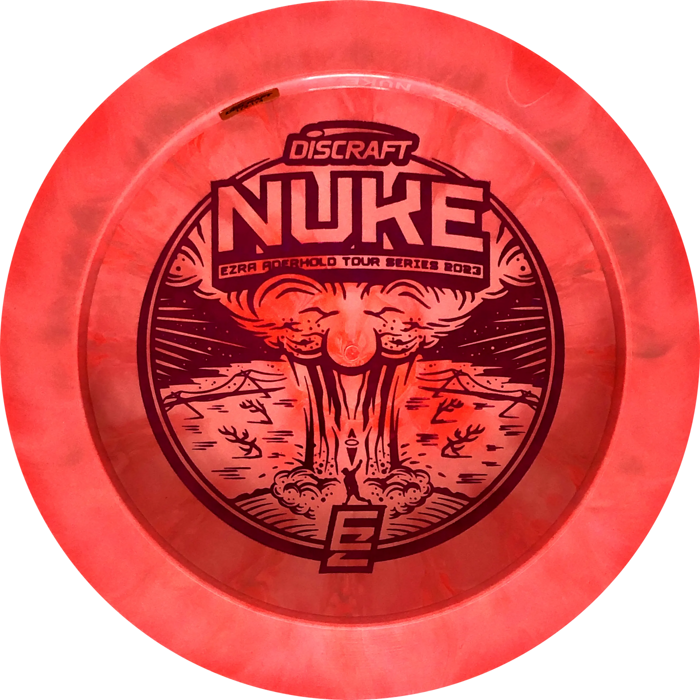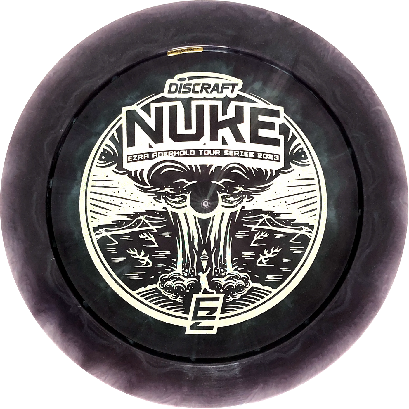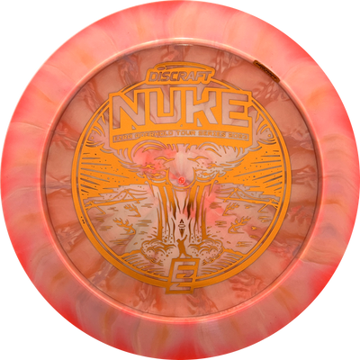 A Nuke is a distance driver designed to fly really far! The wide rim ensures good flight characteristics and a good grip so there is room to rip through when throwing. Experienced players will experience a slight turn before the disc continues in a reliable fade. With an Ezra Aderhold Nuke, you support Ezra from Team Discraft by buying his favorite driver.