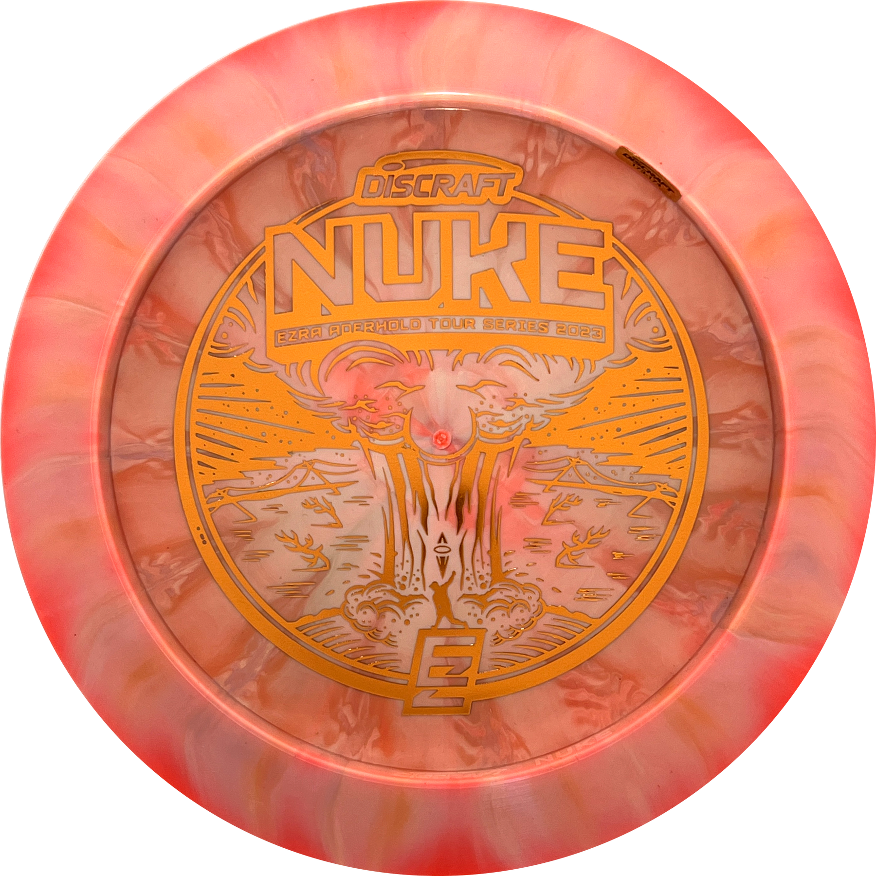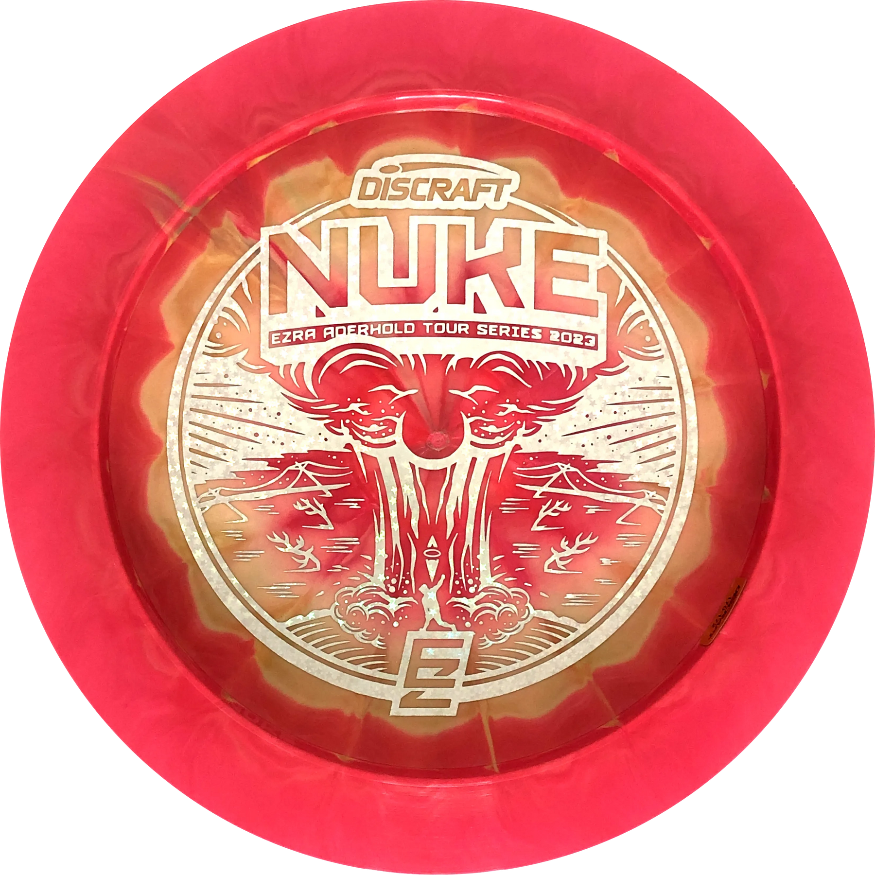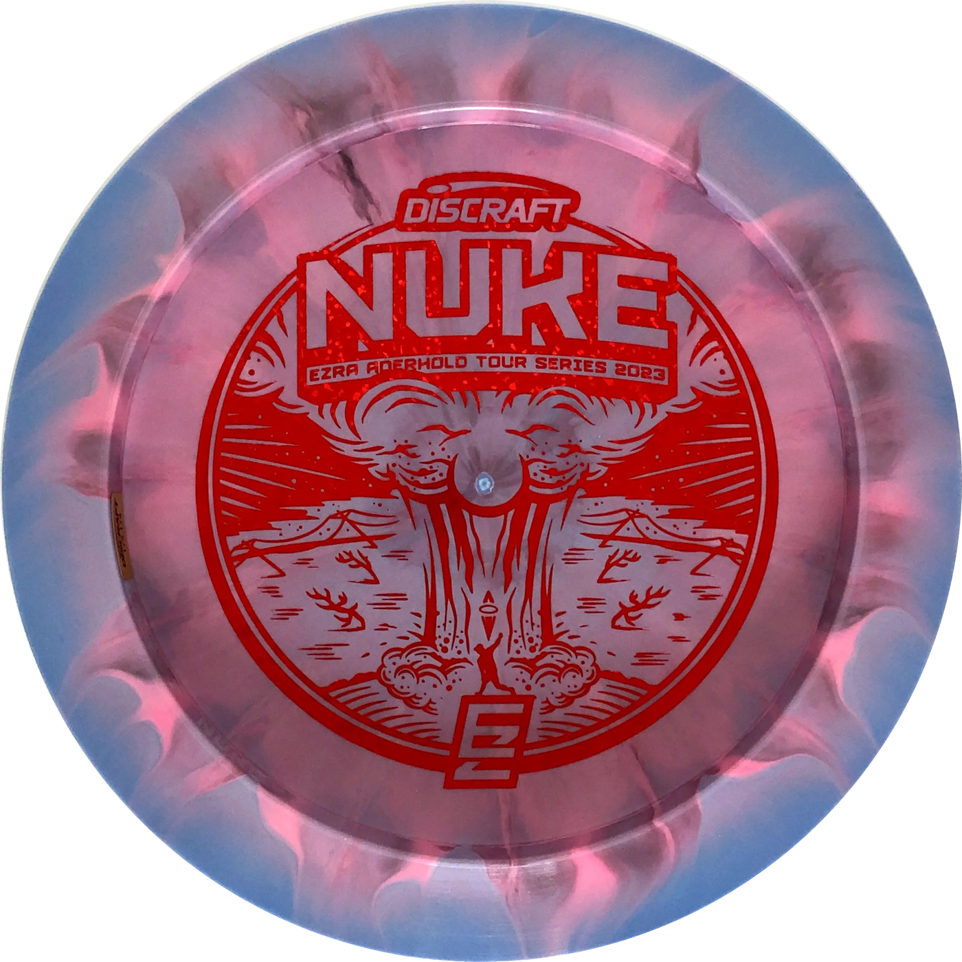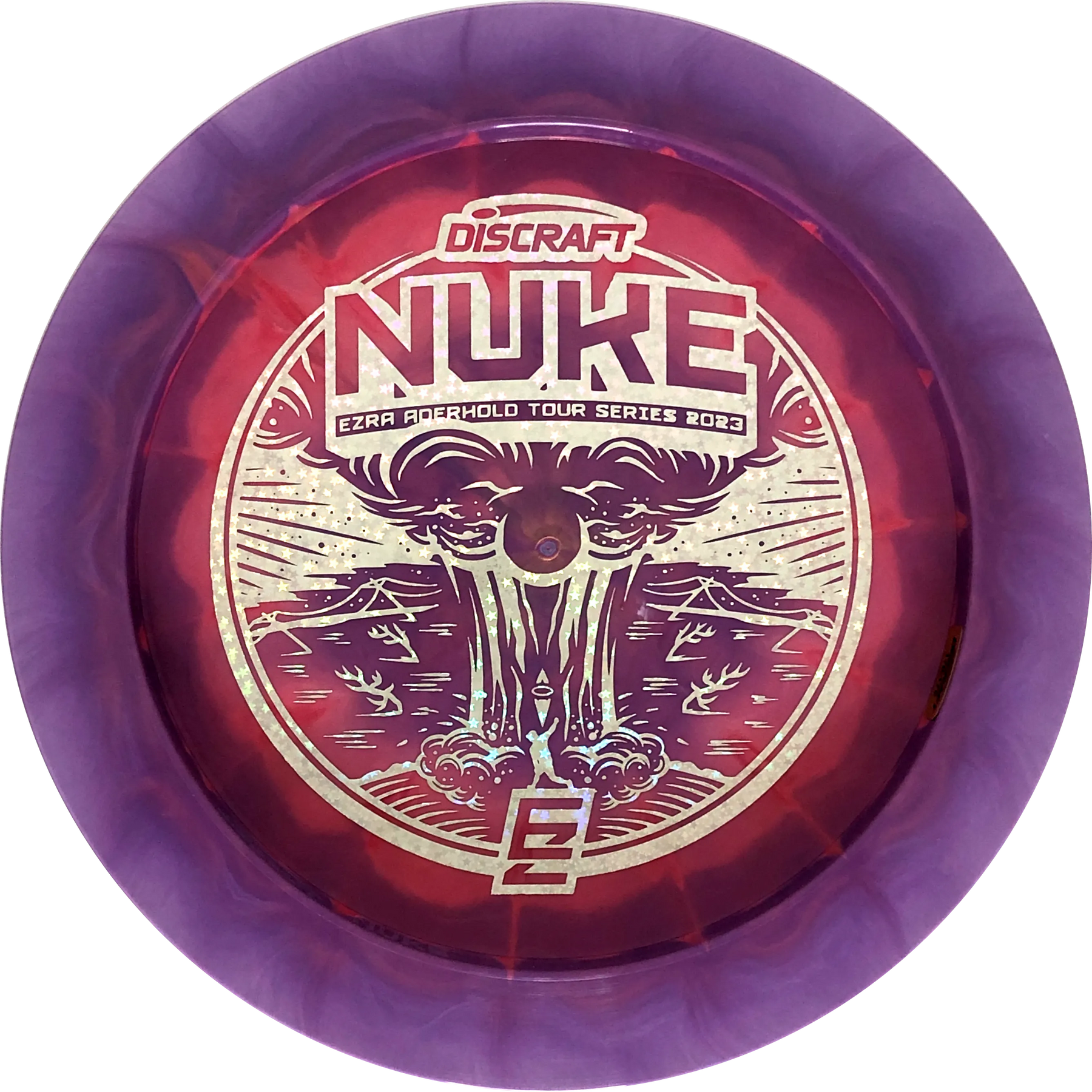 A Nuke is a distance driver designed to fly really far! The wide rim ensures good flight characteristics and a good grip so there is room to rip through when throwing. Experienced players will experience a slight turn before the disc continues in a reliable fade. With an Ezra Aderhold Nuke, you support Ezra from Team Discraft by buying his favorite driver.