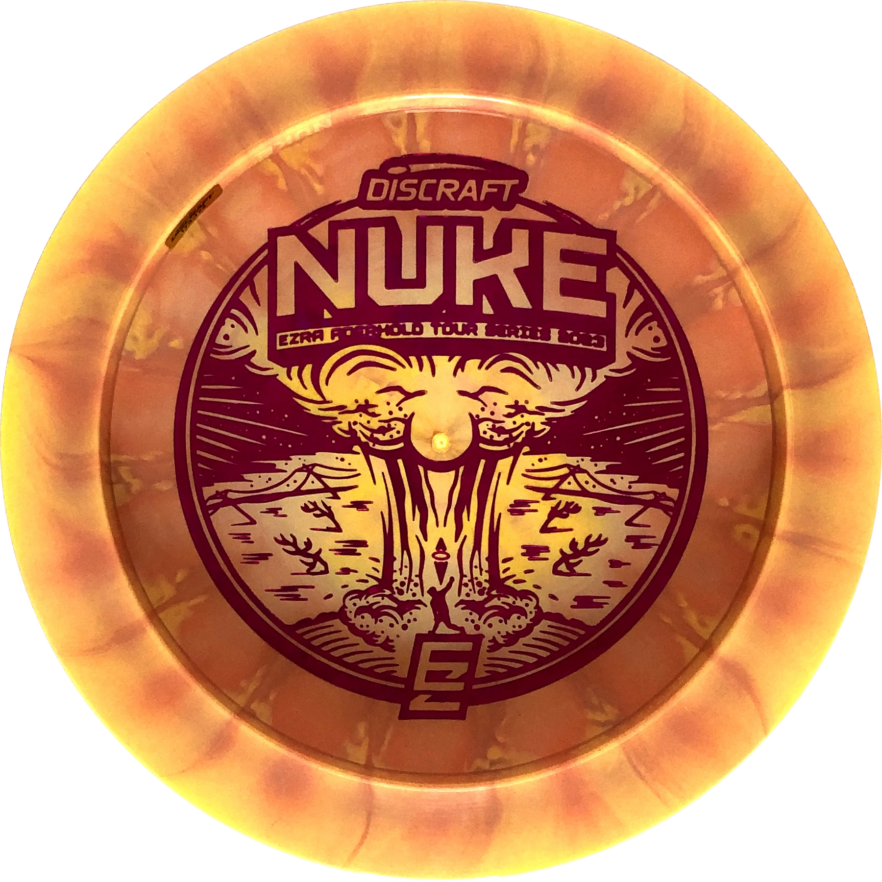 In 2023, all Discraft Tour Series discs will come with a bottom stamp. The stamp is therefore printed on the underside of the disc. All images of the Disccraft 2023 Tour Series in the shop at Disc Tree therefore show the disc's underside.