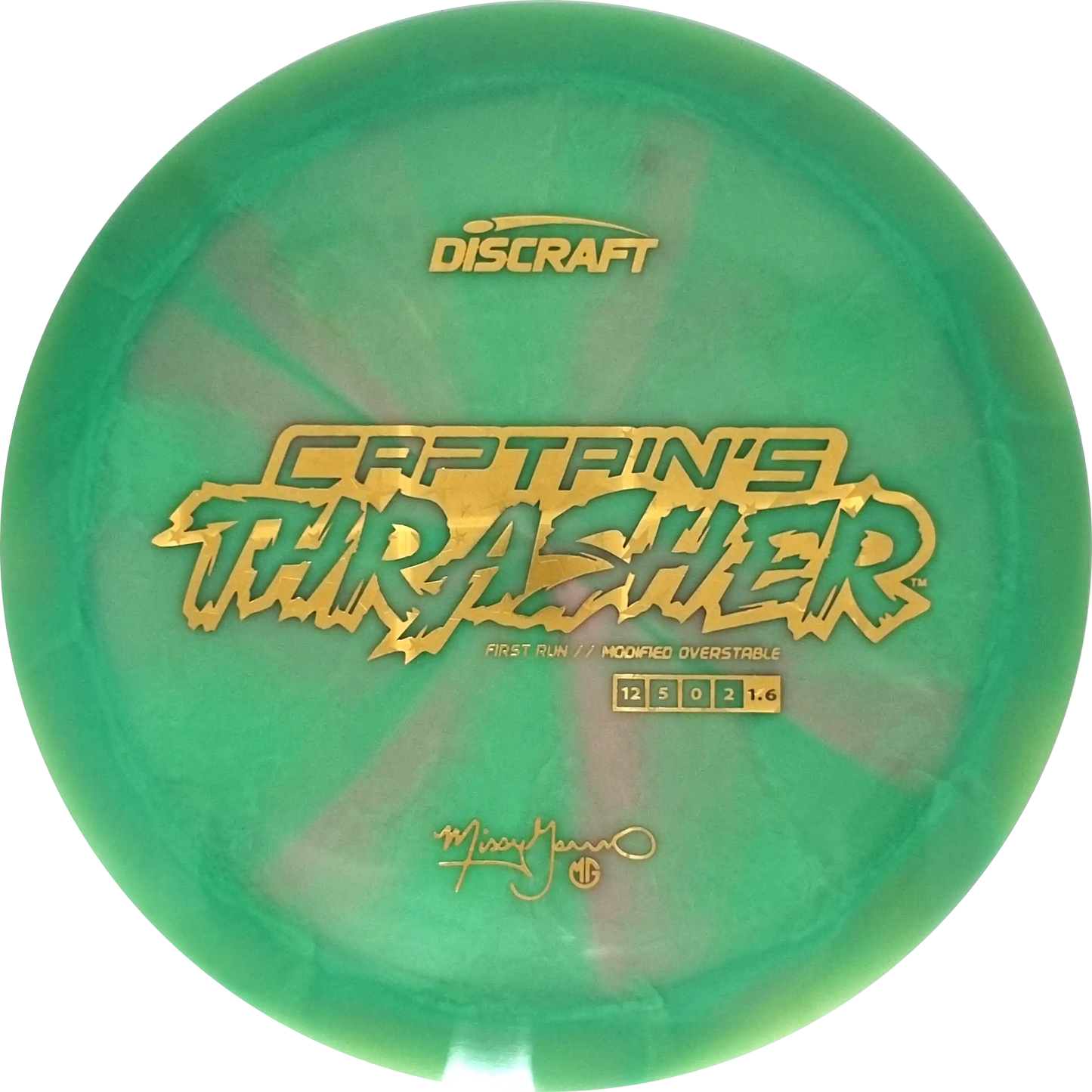 The 2024 edition of Captains Thrasher is a modified version of Discrafts Thrasher designed with input from Missy Gannon. Captains Trasher is a more stable version of the Thrasher you know and it is therefore designed to be thrown with lots of power on the long straight casts.