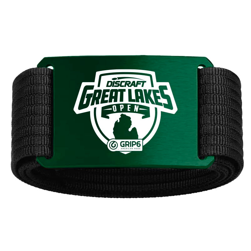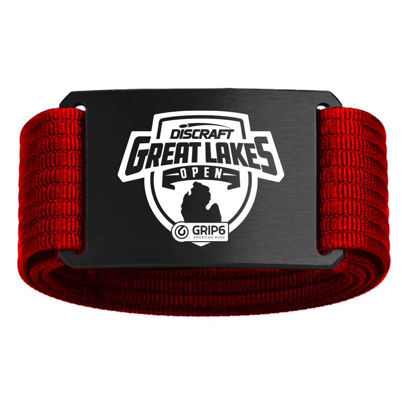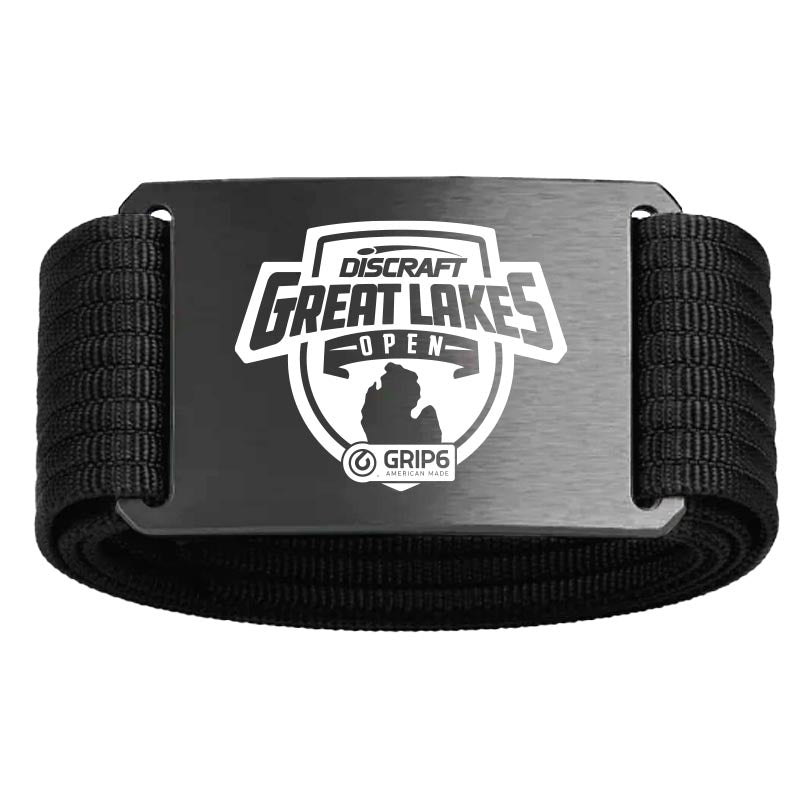 The GRIP6 belt comes here with a belt buckle made for the Discraft Great Lake Open tournament which is held every year in the USA.