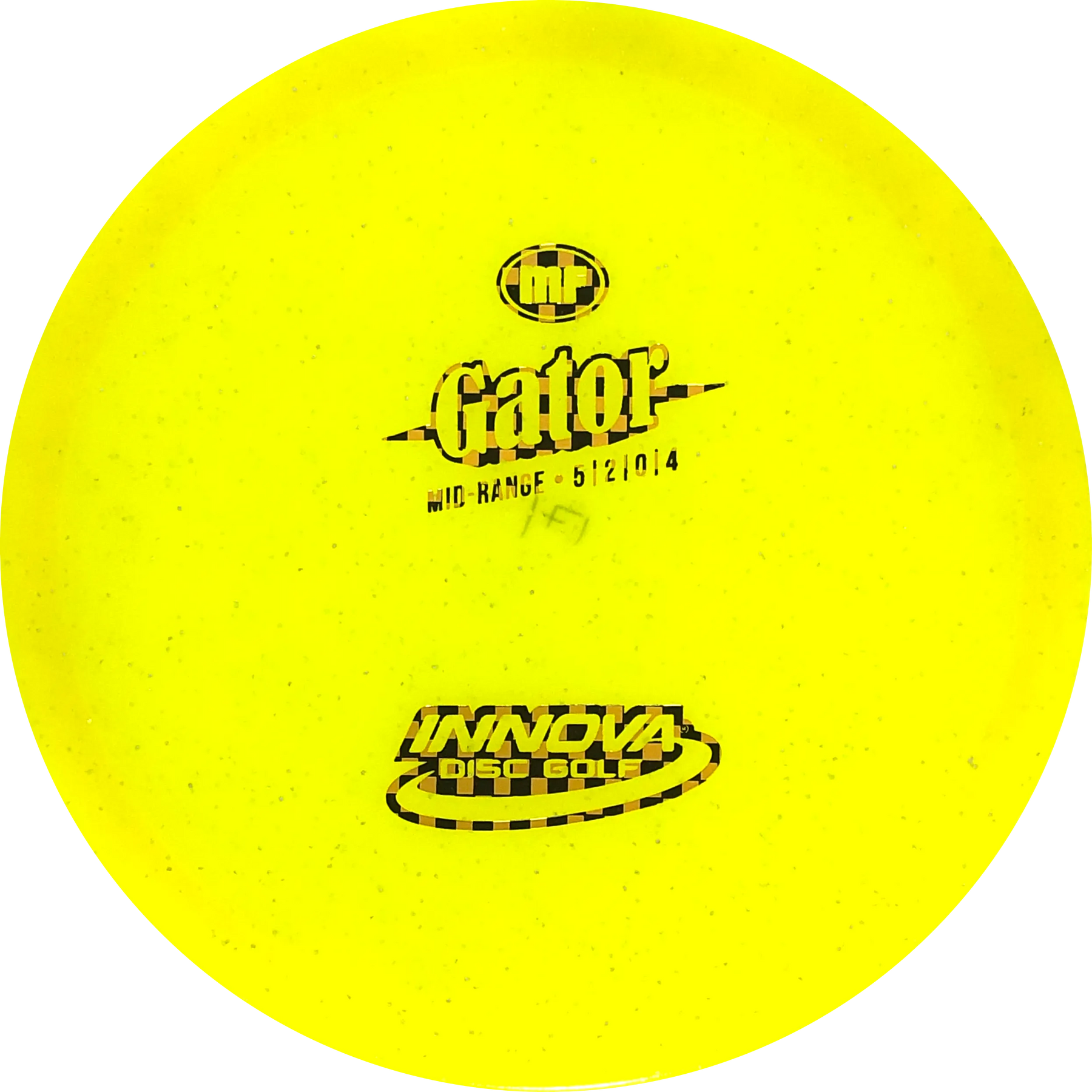 A gator is a very overstable midrange with a low glide that offers the ultimate control over your approach or medium distance sidearm throws. In metal flake plastic, you get a super durable disc with nice details and tiny pieces of metal that are molded into the plastic.