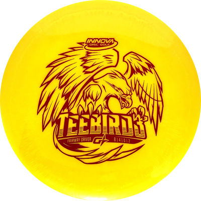 The Teebird3 is a development of Innova's extremely popular Teebird. With the same turn and fade, but higher speed and lower glide, this disc is made to fly very similar to a Teebird, but with better control for the experienced player. In GStar plastic, you get a disc in the softest of Innova's premium plastics, which ensures a very good grip on the disc.