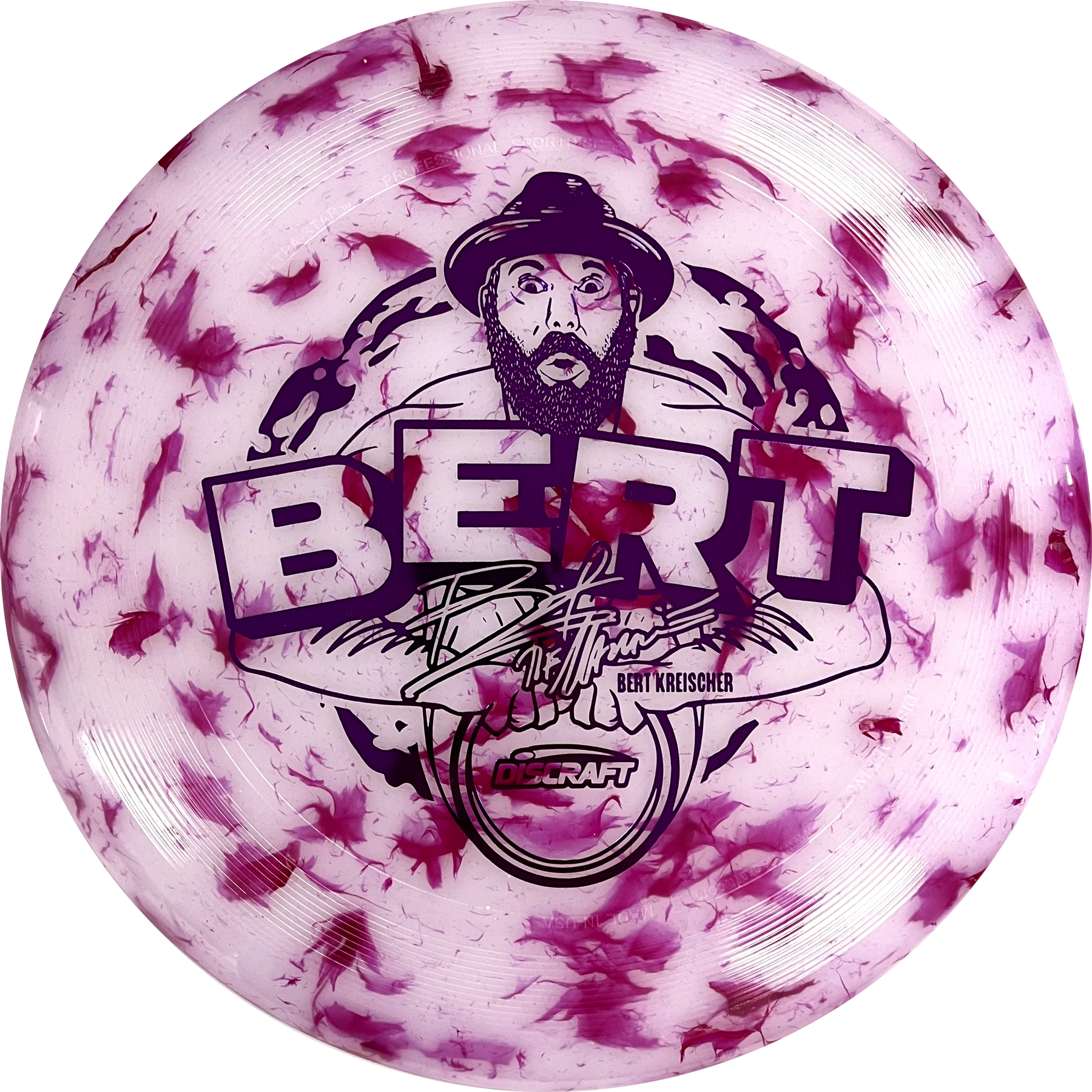 Discraft's ultrastar is one of the best known models of sports discs which are designed to be thrown at each other. It is also often called a frisbee and is used in the sport of Ultimate Frisbee. It comes out here in a very special Jawbreaker plastic and with a motif of the comedian Bert Kreischer from the USA.