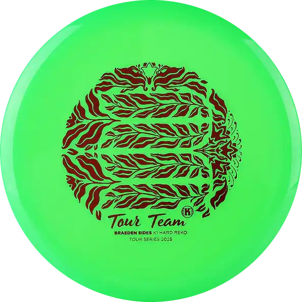 Kastaplast's Reko is a popular putter for both putting and throwing. Here it comes in a 2025 tour series edition for Braeden Sides. This version of Reko is made from Kastaplast's K1 Hard plastic, giving you a slightly firmer premium plastic that is particularly good as a throwing putter.