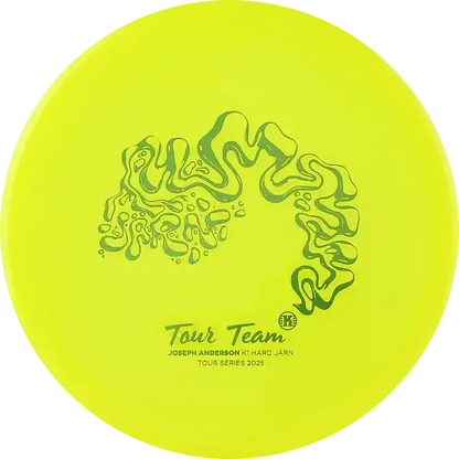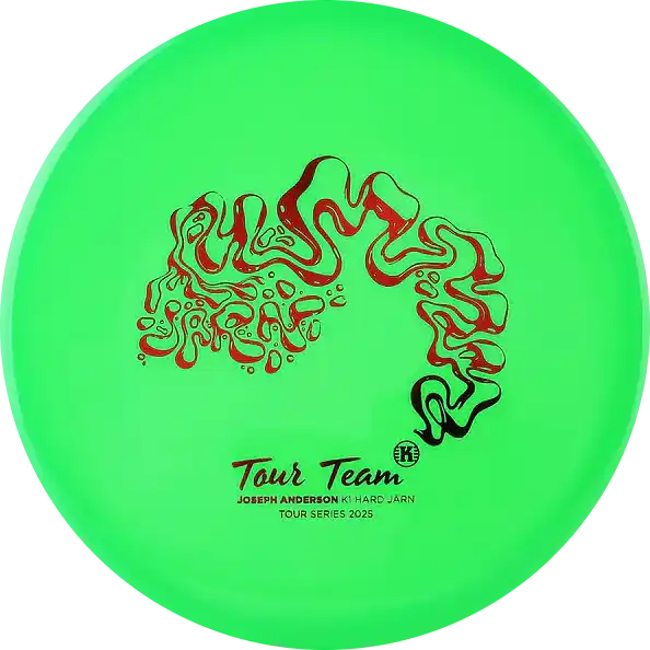Järn is a very popular overstable midrange from Kastaplast. Here it is released in K1 Hard plastic as part of the Kastaplast 2025 Tour Series for Joseph Anderson. A Järn has a low glide and is suitable for players looking for a disc that does what it is told. The low glide ensures that it quickly seeks the ground, and a Järn finishes its flight with a significant fade.