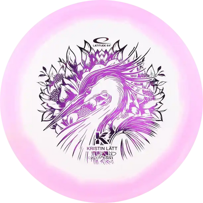 Saint Pro is the big brother to Saint with extra stability aimed at the slightly more experienced player. Although it is more overstable, it retains the usual Saint's good glide and controllable flight characteristics. For players with good arm speed, this fairway driver is a must-have. Here, Saint Pro is released as part of Kristin Lätt's 2025 Team Series from Latitude 64. The color of the print may vary.