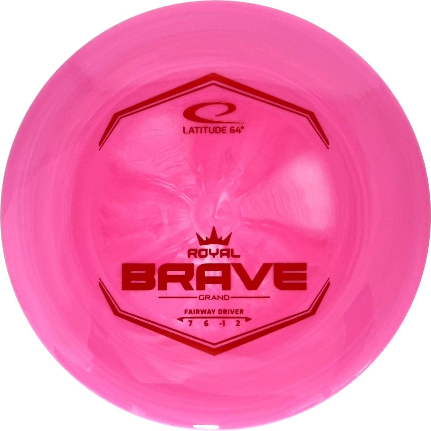 Discs in Latitude 64's Royal plastic may have slightly different shades from the image shown with varying degrees of swirls in the plastic. A pink version can therefore vary from being a slightly lighter pink to a slightly darker pink.