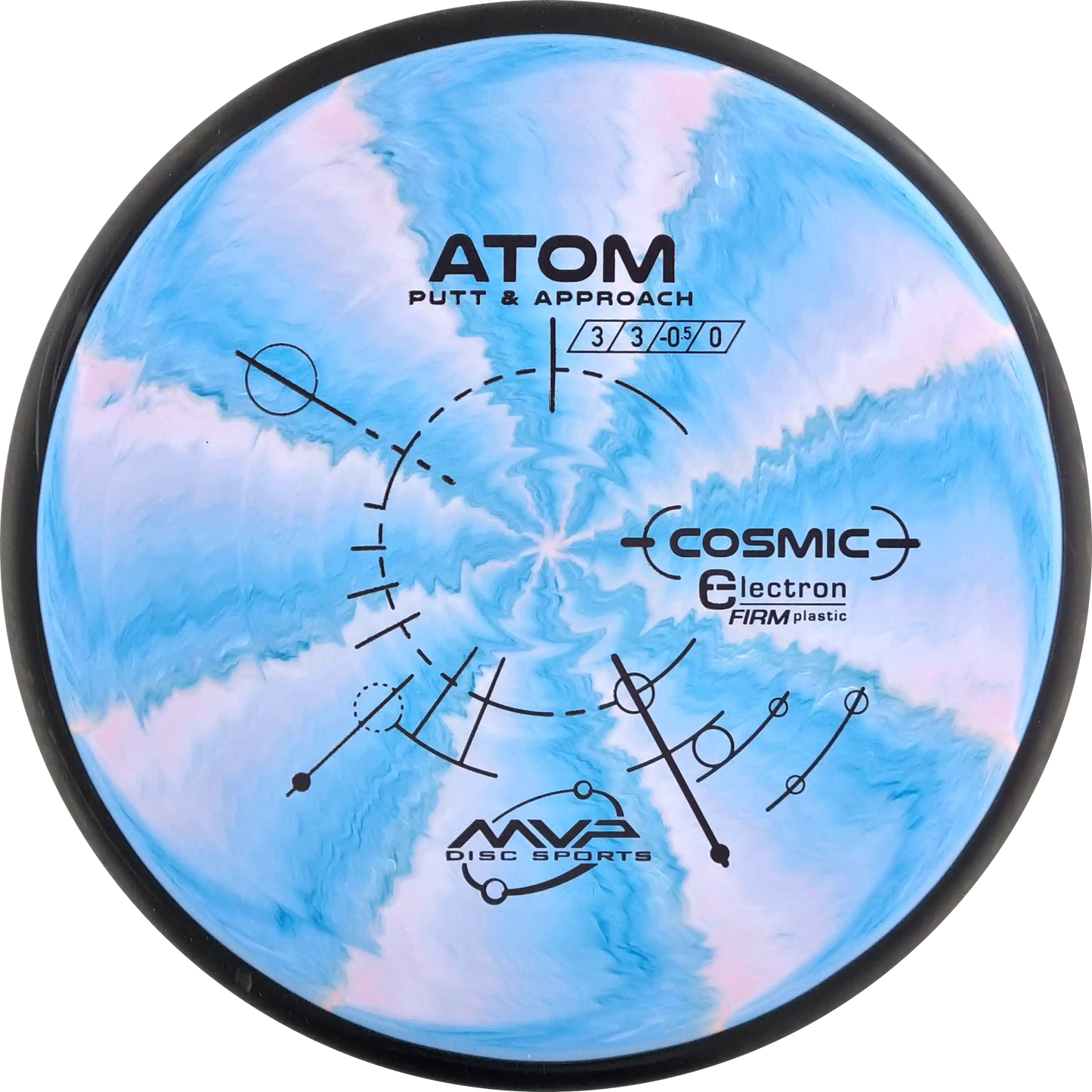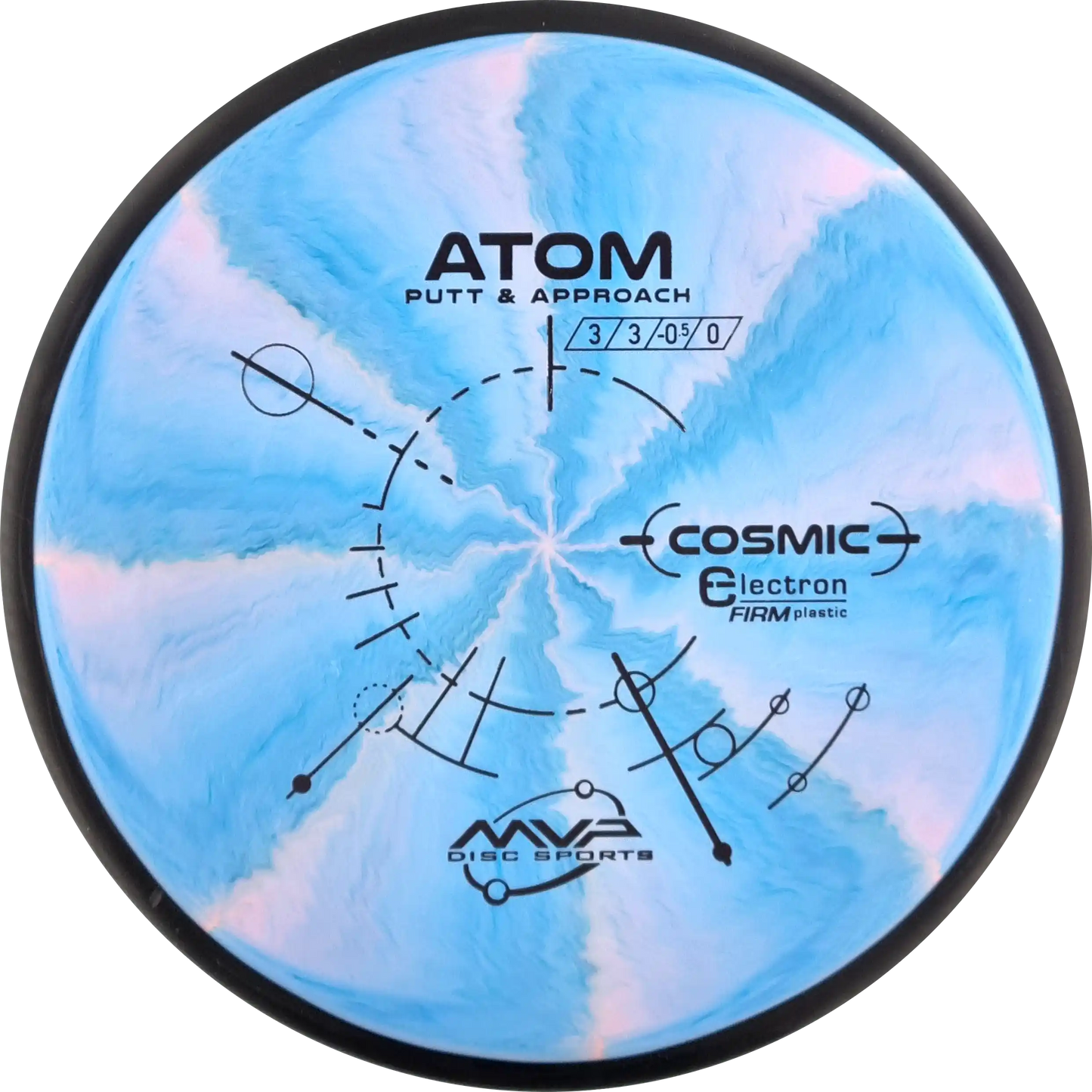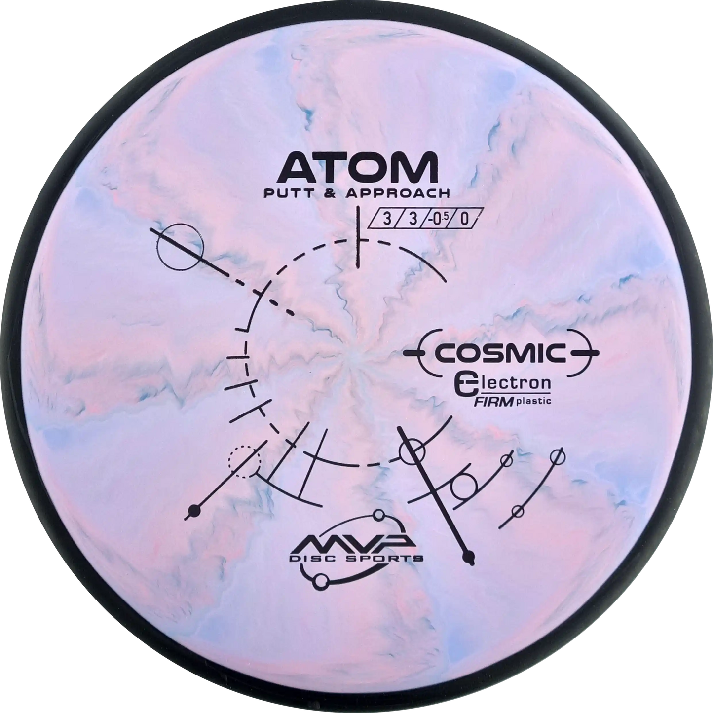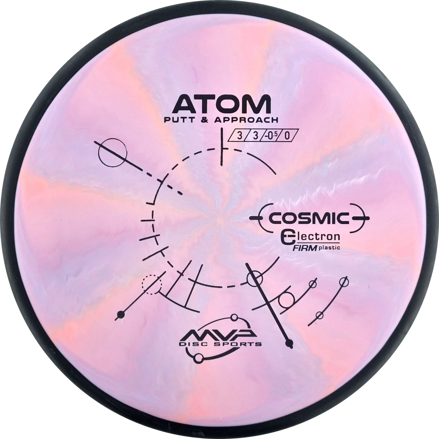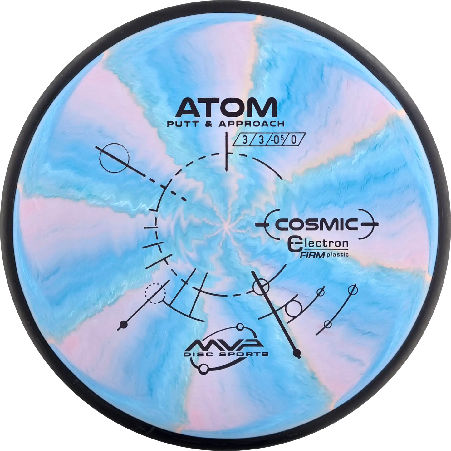 The MVP Atom is a putter known for its straight and stable flight, which provides precision both when throwing and putting. Atom's design makes it versatile and easy to control. In Cosmic Electron Firm plastic, you get a firmer and more stable feel, which ensures a firm grip and precise control. The Cosmic Electron Firm plastic has beautiful swirls that make each disc unique and is an ideal choice for players who want a putter with a solid and reliable response.