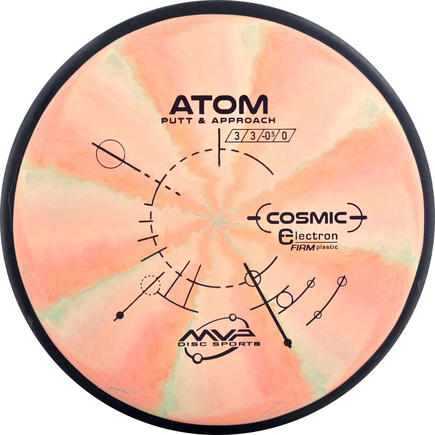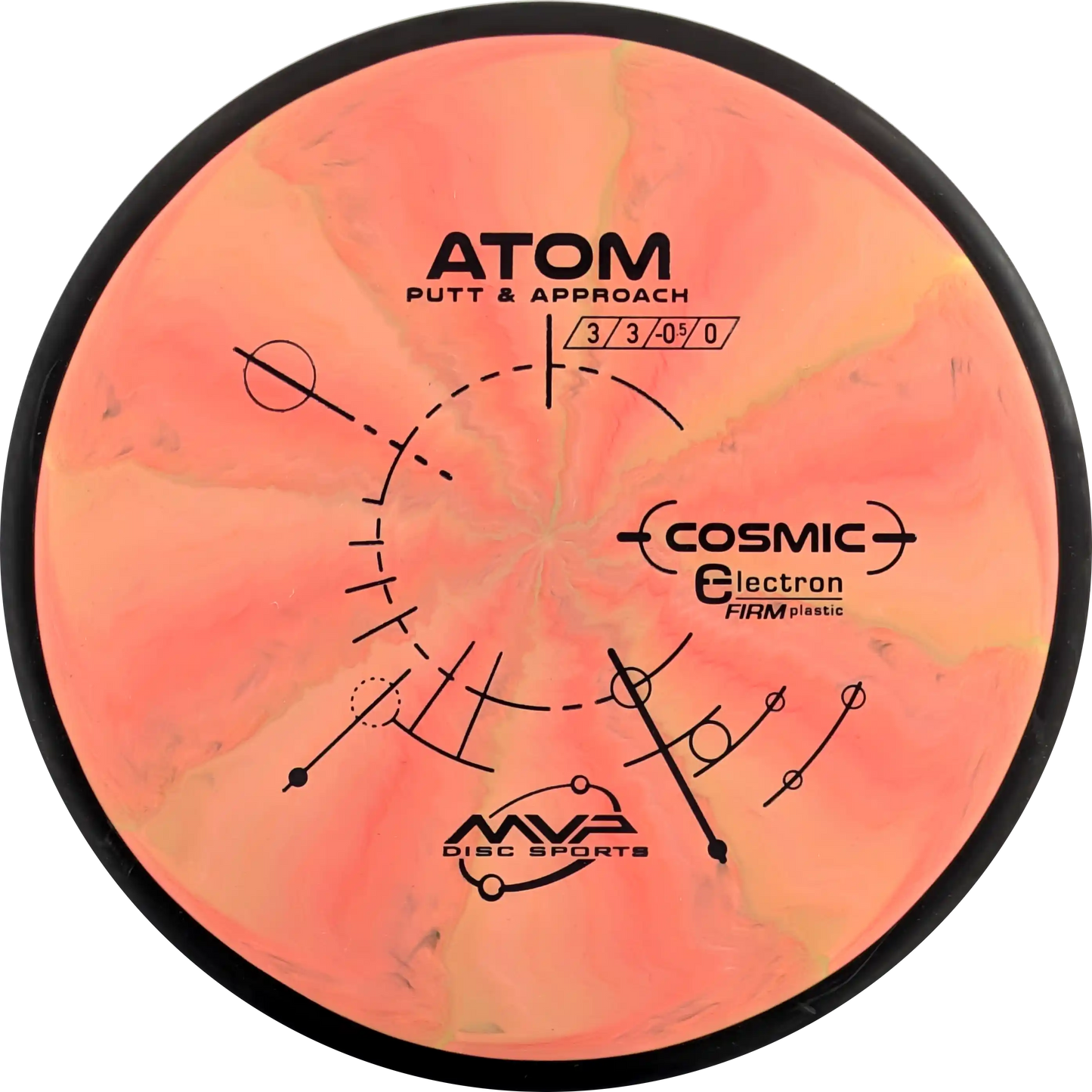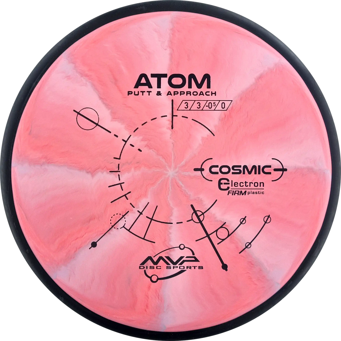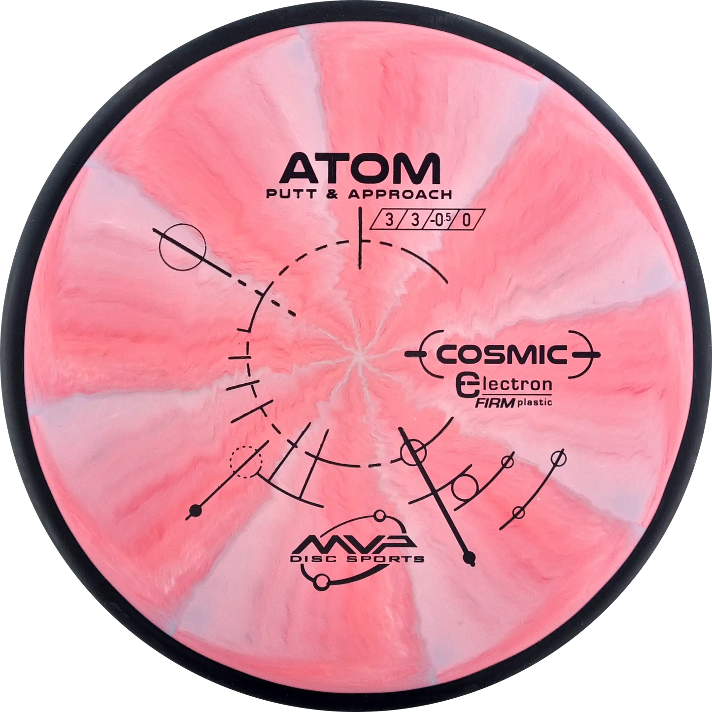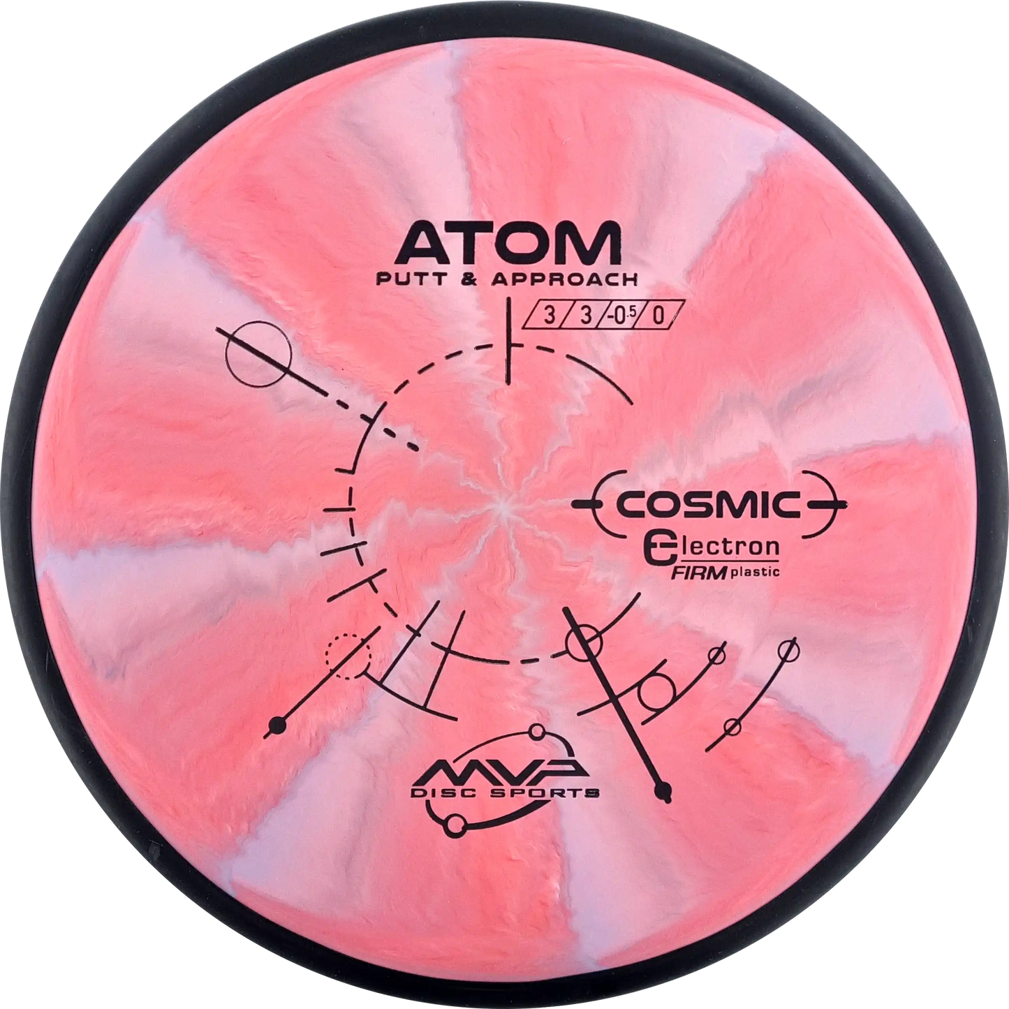 The MVP Atom is a putter known for its straight and stable flight, which provides precision both when throwing and putting. Atom's design makes it versatile and easy to control. In Cosmic Electron Firm plastic, you get a firmer and more stable feel, which ensures a firm grip and precise control. The Cosmic Electron Firm plastic has beautiful swirls that make each disc unique and is an ideal choice for players who want a putter with a solid and reliable response.
