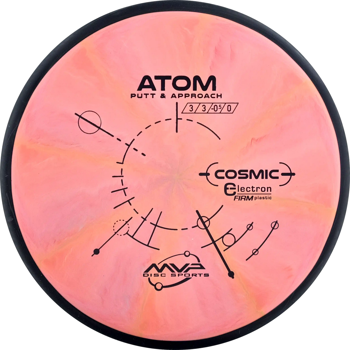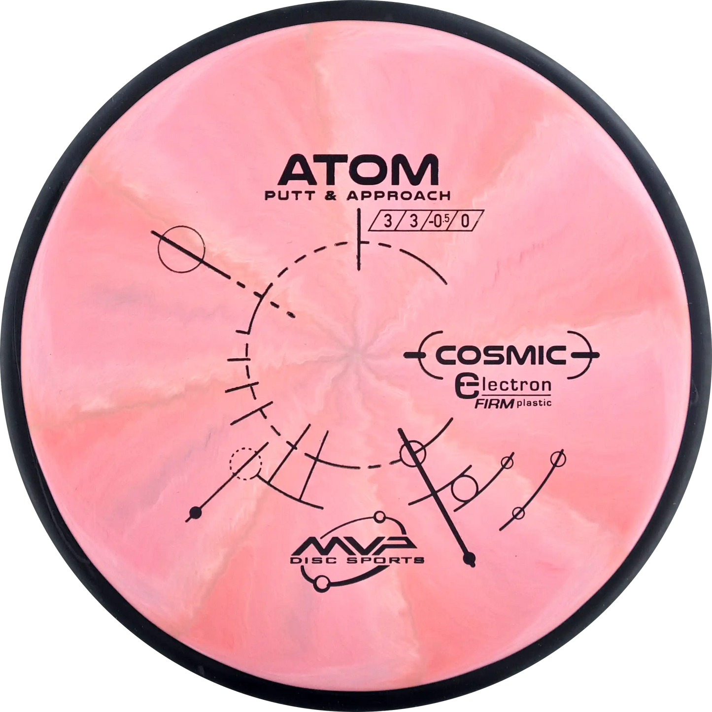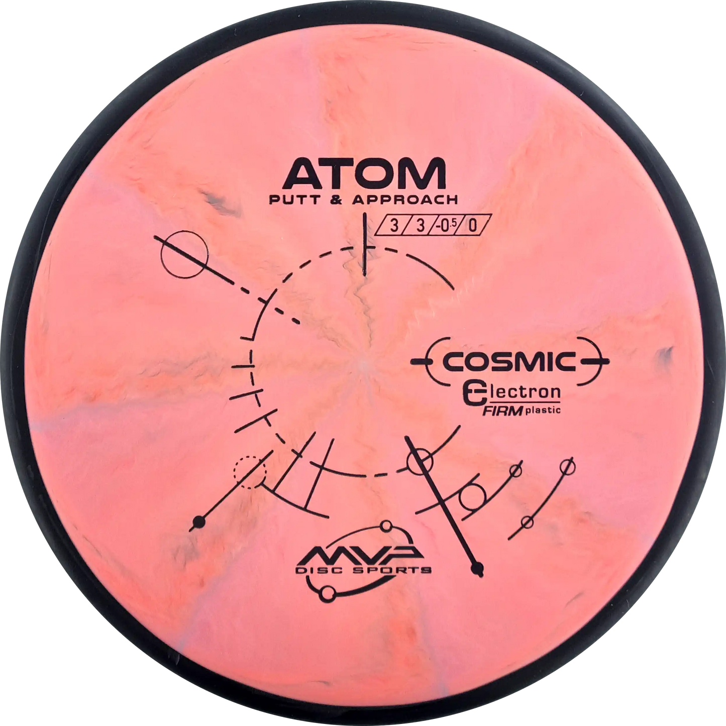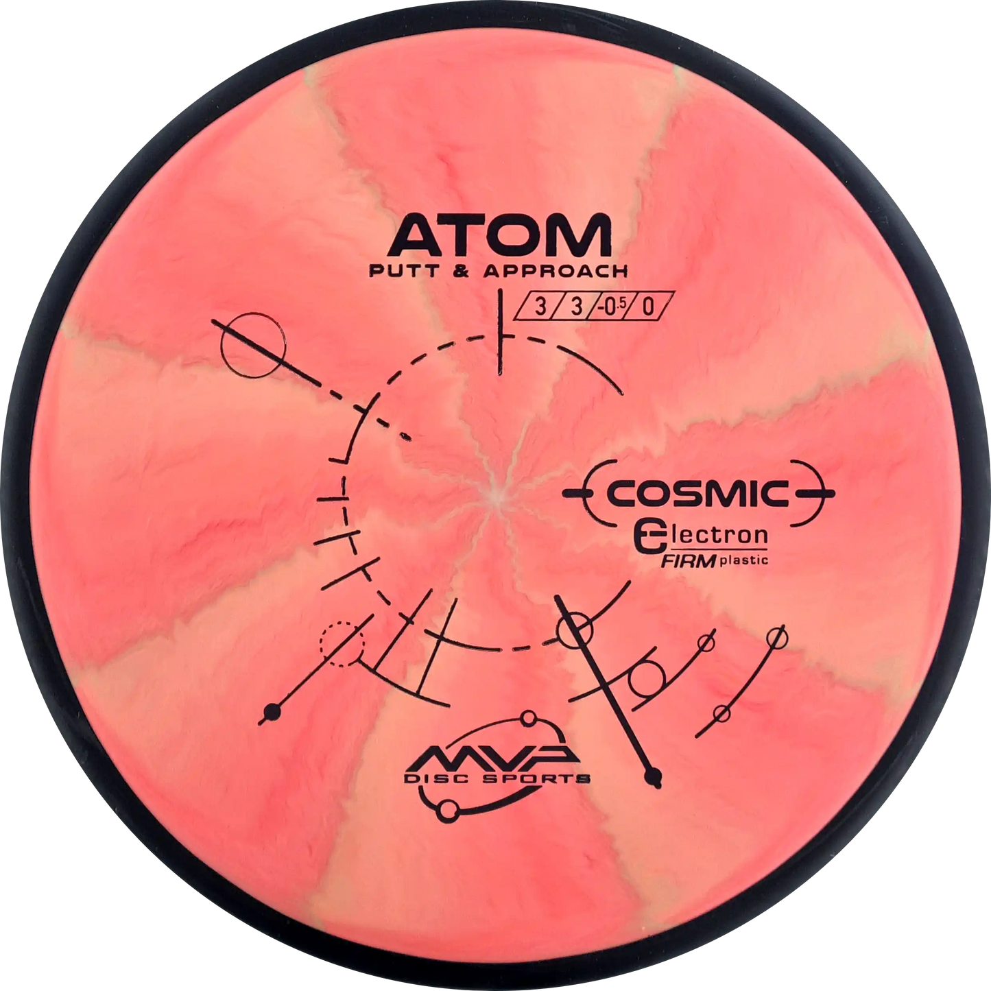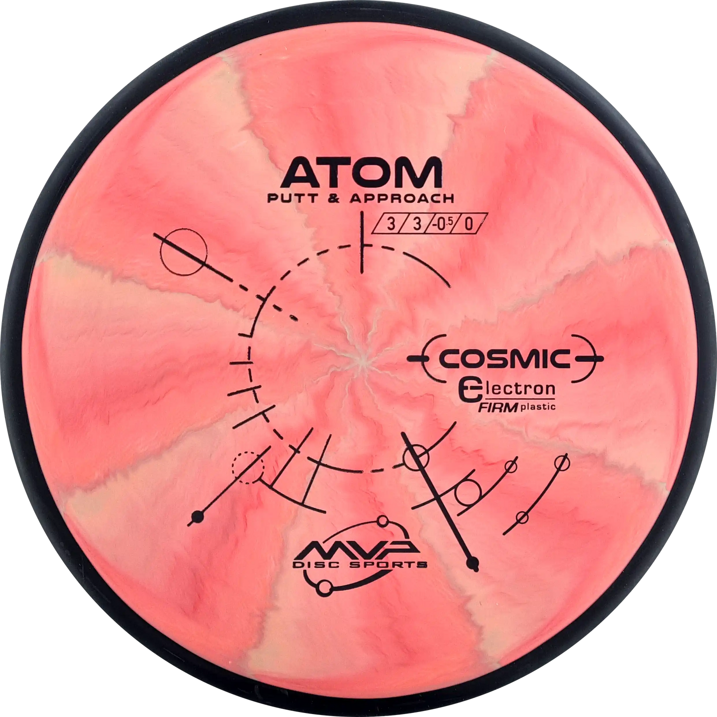 The MVP Atom is a putter known for its straight and stable flight, which provides precision both when throwing and putting. Atom's design makes it versatile and easy to control. In Cosmic Electron Firm plastic, you get a firmer and more stable feel, which ensures a firm grip and precise control. The Cosmic Electron Firm plastic has beautiful swirls that make each disc unique and is an ideal choice for players who want a putter with a solid and reliable response.