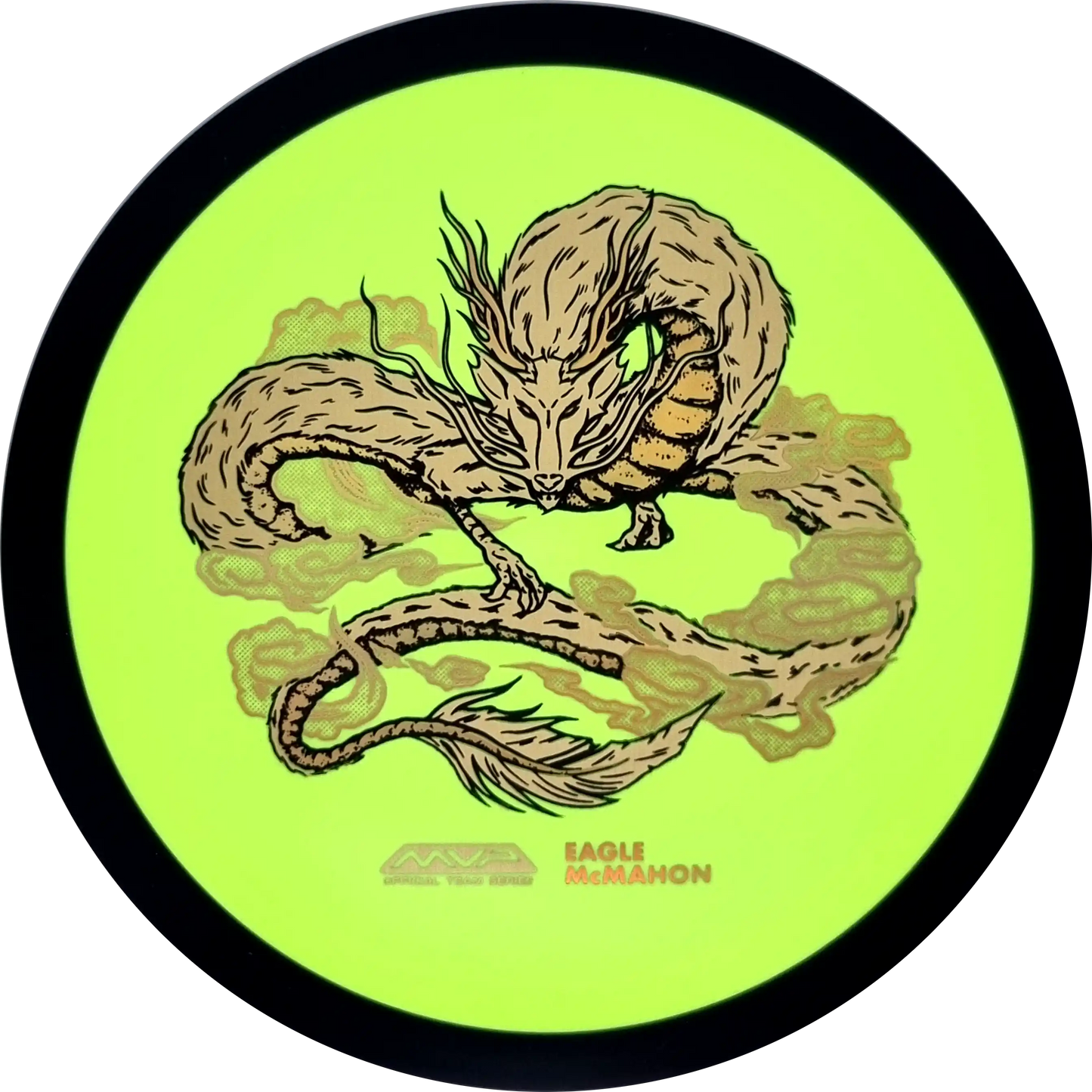 Dimension from MVP is a fast driver and with speed 14 it is a disc that flies very well at very high speeds. Here it is released in Fission plastic as a signature disc for Eagle McMahon under the name Wynn Dragon. Eagle McMahon is one of the most popular pro players in disc golf and he is known for throwing very far in both forehand and backhand.